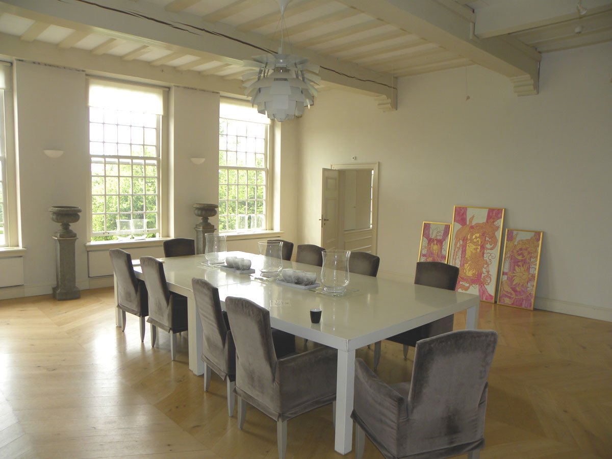 De schilderijen in deze centrale hal zijn de originele schilderijen die zijn gered van de brand in 1987. In de kamer links van de centrale hal ligt laminaat. Het was een van de eerste laminaatvloeren in Nederland. Het huidige huis is zo goed als kon hersteld. Sommige originele delen zijn gerestaureerd. Andere zaken zijn nagemaakt a.d.h.v. foto’s.
